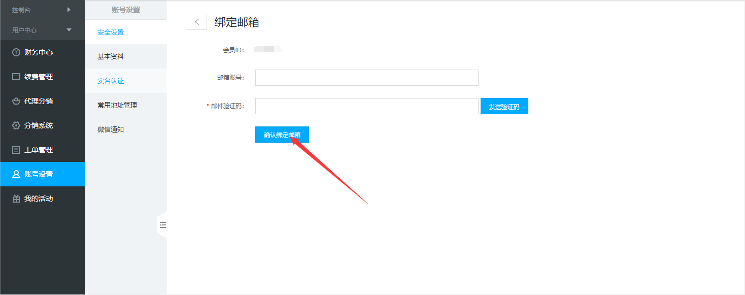 1.登录用户中心,点击“账号设置”—“安全设置”;找到邮箱绑定,点击“立即启用”; ![]() 2.输入常用邮箱,发送验证码,验证成功之后即可完成邮箱的绑定。 ![]() 邮箱修改1.登录用户中心,点击“账号设置”—“安全设置”; ![]() 2.找到邮箱绑定,点击“修改”;