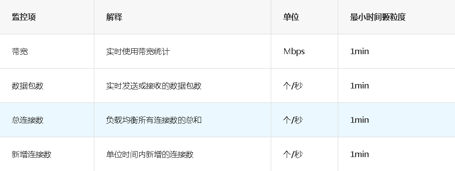 负载均衡监控 监控和告警作为基础架构里重要的组成部分,对日常运维十分重要。提供了负载均衡监控功能,帮助用户迅速了解负载均衡的运行状态。有实时带宽、总连接数、http 状态码等8个监控指标进行监控。并支持用户自定义报警规则。 监控项说明实例层面